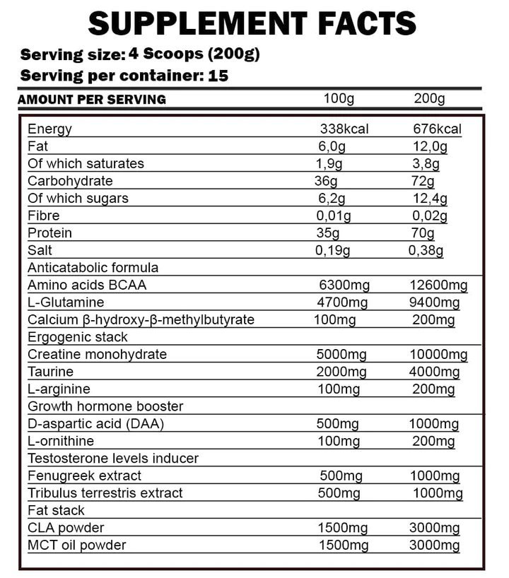Protein is a rich source of essential amino acids. Each Gold Lean Mass Gainer serving has 12.5g of BCAAs (branched-chain amino acids). BCAAs help you recover from early muscle fatigue and prevent muscle injury.