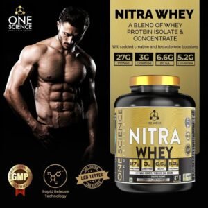 Nitra Whey protein is one of the most helpful and top-notch kinds of protein we can incorporate into our daily diet. One Science Nutrition’s scientifically engineered product called NITRA WHEY has been calibrated with utmost precision to ensure it acts directly on strengthening your muscles. Every serving provides you with 27g of the best quality protein. Nitra Whey also contains digestive enzymes and herbal boosters of testosterone to provide your body with the most efficient and authentic intake. What are the benefits of taking One Science Nutrition NITRA WHEY? Regular consumption of OSN Nitra Whey is extremely favourable for your health. Our product contains 150 mg of MACA Powder, 100 mg of DAA, and 100 mg of Tribulus, which ensures to maintain your muscles in their growth and repairs while also being easy on your stomach with added digestive enzymes. OSN Nitra Whey also speeds up the burning of unnecessary body fat and is low in carbohydrates to work on your muscles steadily in order to guarantee you, a balanced and smooth build of lean muscles. How should you take it? Take 1 scoop (i.e 330g) and mix it with 150ml of milk, water, or any liquid you prefer to drink. The best way to attain all benefits of Nitra Whey is to take it after every workout session. The enzymes ensure to get digested at a quick pace, recovering you almost instantly.